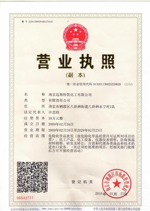 南京邁斯特凱化工有限公司位于長江之濱的六朝古都南京市,成立于2009年,生產基地位于連云港市灌云縣燕尾港化工園區。是一家集產品研發、生產、銷售、服務于一體的綜合性化工企業,公司主要生產經營碳酸錳、硫酸錳、氯化錳、無水氯化錳、四水氯化錳、馬日夫鹽和對苯二酚等產品。公司具有獨立自主的開發能力。擁有研發人員數名,擁有先進的實驗設備和化驗儀器, 是一家以"產、學、研"為基礎的科技創新型現代化企業。公司全體員工恪守“和諧穩定,共謀發展”的企業精神及“源于社會,服務社會”的經營宗旨,以“團結、勤奮、求實、拓展”的工作理念,竭誠為廣大客戶服務。多年來,公司因其雄厚的技術力量,精良的生產設備,齊全的檢測方法,穩定可靠的產品質量,在廣大客戶中享有盛譽。我們始終堅持客戶的需求作為我們努力的方向,去不斷的努力拼搏,開拓創新。我們將以最優質的產品,真誠的服務與您攜手合作,共創成功未來。